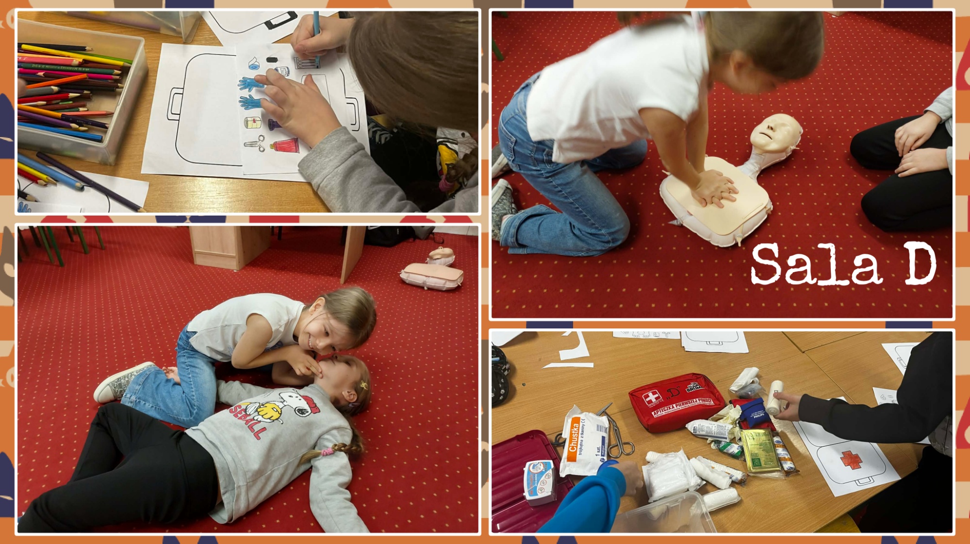 W ostatnim tygodniu w świetlicy odbyły się wyjątkowe zajęcia poświęcone podstawom pierwszej pomocy. Uczniowie poznali najważniejsze zasady bezpieczeństwa, nauczyli się, jak wezwać pomoc w sytuacji zagrożenia oraz jak reagować w przypadku omdlenia, skaleczenia czy zakrztuszenia. Podczas praktycznych ćwiczeń każdy mógł spróbować swoich sił, m.in. wykonując uciśnięcia klatki piersiowej na fantomie i ćwicząc bandażowanie.